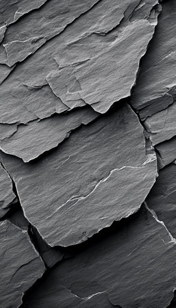 A dark charcoal grey slate texture rough stone surface natural rock background minimal rough stone pattern abstract cracked slate detail closeup grey mineral layer design dramatic dark rock geology
