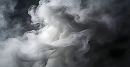 White smoke dances and swirls against a dark background, creating a dramatic and ethereal effect.