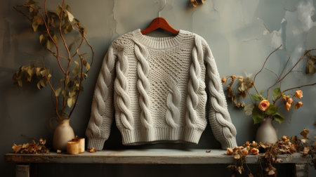 A cozy knit sweater with textured design, showcasing warm gray tones and relaxed fit, perfect for chilly days
