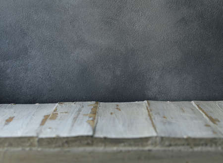 Concrete floor or table empty on a white wood background. Concept to place products such as cement, steel, or other construction related products. Or Place food-related items such as meat, vegetables.
