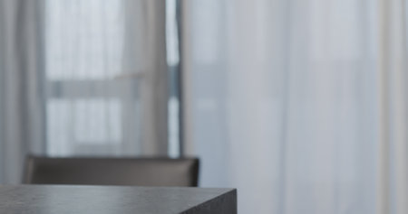 Empty concrete countertop on kitchen with window on background with copy space