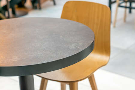 closeup of round table and wooden chair in caffee