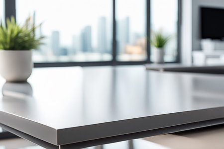 Minimal style and copy space for working.Blurred close-up of a luxurious marble table corner.Template mock up for display or montage of product