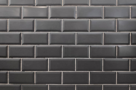Grey tile wall background texture close up