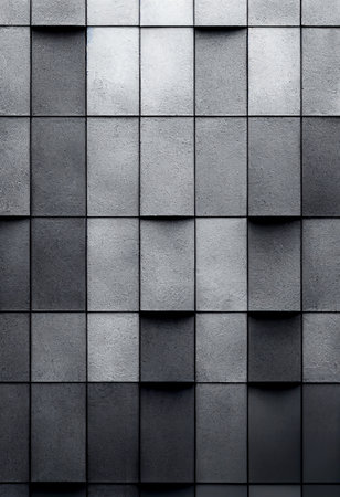 This image features a modern gray wall with textured tiles, creating a sleek and minimalist aesthetic perfect for interior design projects or renovations.