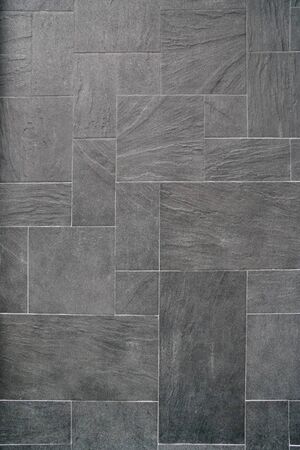 Interior bathroom tiles tiles. Image of interior flooring with grey beige pavement slabs.