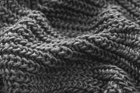 Monochrome knitted fabric closeup. Knitted wool background. Handmade. Close up.