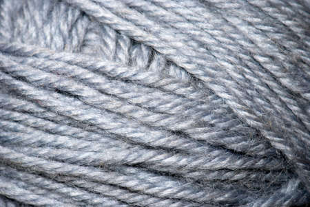 Thick dense woolen threads gray color for knitting. Top view. Wool texture background.