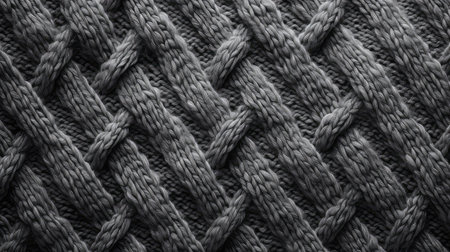 A creative digital illustration depicting Professional artistic design of plush dark alpaca wool knit, cable stitch texture, warm soft lighting, comforting lavish warmth, heather black and wool gray palette. This AI-generated artwork features unique visual elements suitable for various commercial and editorial applications. AI-generated illustration.