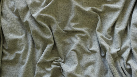 Gray Fabric Background. Pattern Surface Texture Material Garment Cotton Backdrop. Light Shine Bright. Luxury design artistic Decoration Hosiery Cloth Natural. Flat lay with Free space.