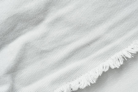 Close up beige cotton fabric texture with fringe edge. Natural vintage textile background..