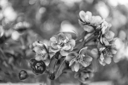 Bouquet of flowers in a restaurant. Black and white photo.