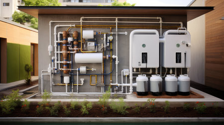 Home water filtration system. Osmosis deionization system. Water treatment Appliances, ultrafiltration background. Generative AI
