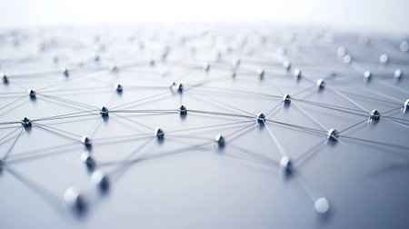 A network pattern of lines and dots on a light background. Space for text