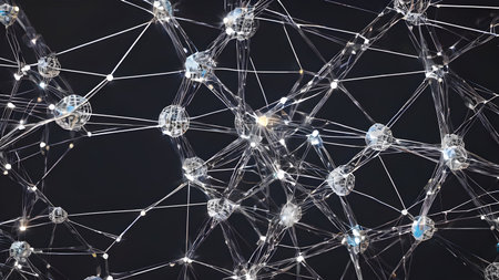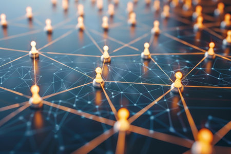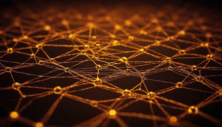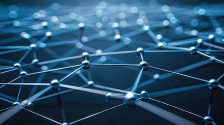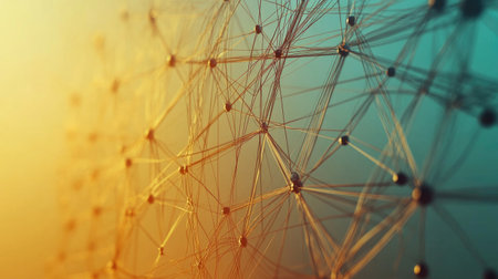 This abstract image showcases a digital network with glowing nodes and interconnected lines, creating a beautiful representation of connectivity in technology.
