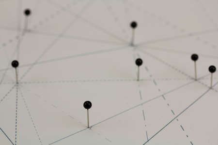 Black pins in paper linked together by lines