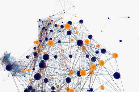 Glowing nodes with variational lines, 3d rendering. Computer digital drawing.
