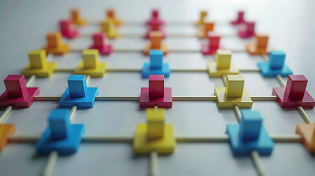 Grid-like arrangement of interconnected nodes and links --ar 3:2 Job ID: 4e765c56-759d-458c-817e-7cd919a06612