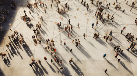 top view of crowd people connected by lines, communication concept, AI Generated.