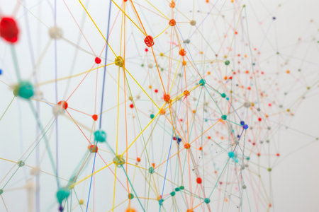 Connected dots and lines forming a network, symbolizing teamwork and communication.