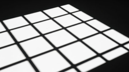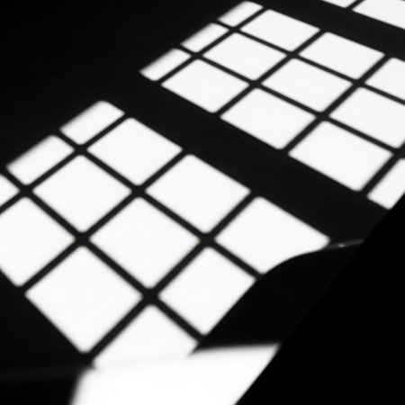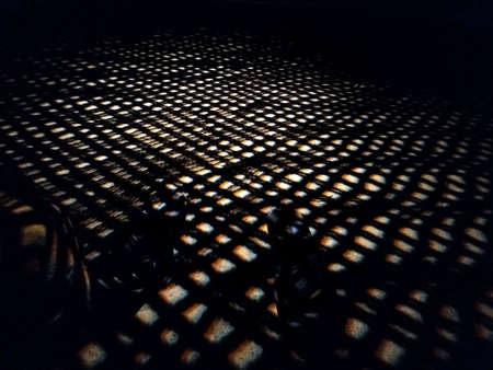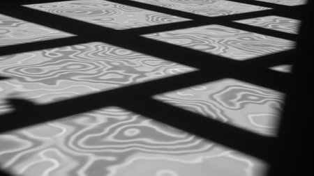 This image captures an abstract interplay of light and shadow on a grid surface, creating unique patterns and textures perfect for artistic backgrounds and design inspiration.
