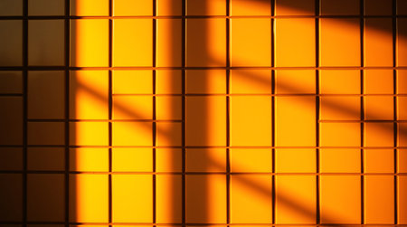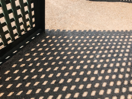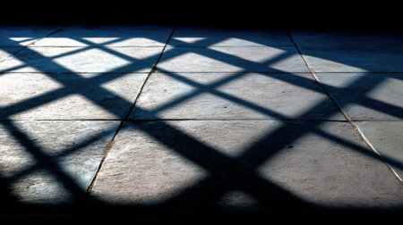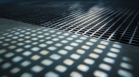 Sunlight through grid casting repetitive shadow squares