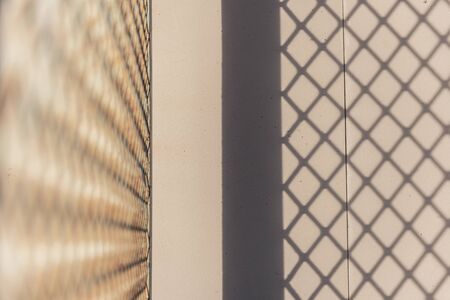 Abstract texture of metal grid on concrete wall with shadows and light play