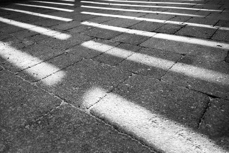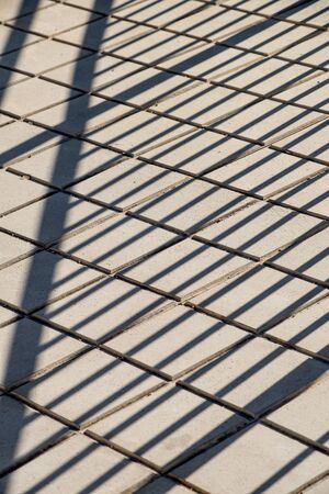 The shadow from the fence on the paving stones. background