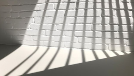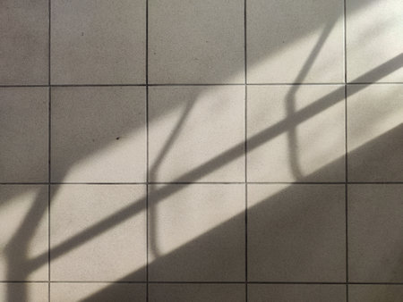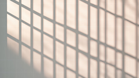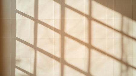 Soft Morning Light Casting Intriguing Shadow Patterns on a Light-Colored Wall with Textured Tiles Creating a Serene Atmosphere in an Indoor Space