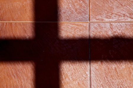 Shadow of the roof structure on the floor.