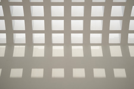 the grid, a staple of modern design, takes center stage in this striking photograph, showcasing a pristine white background that exudes minimalism and simplicity, evoking feelings of calmness and serenity, perfect for interior design inspiration and clean aesthetic enthusiasts. ai generated
