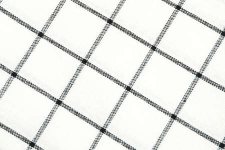 Fabric texture, close up of a black and white checkered plaid towel or napkin pattern background, pattern for design or any use top view, macro