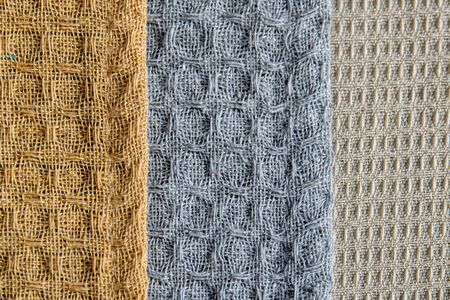 fabric texture close up. Three different cotton kitchen towel close-up.