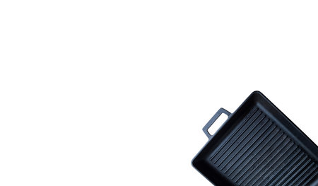 Black square cast iron frying pan isolated on white background