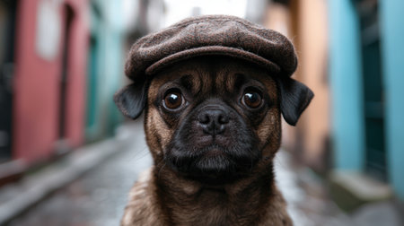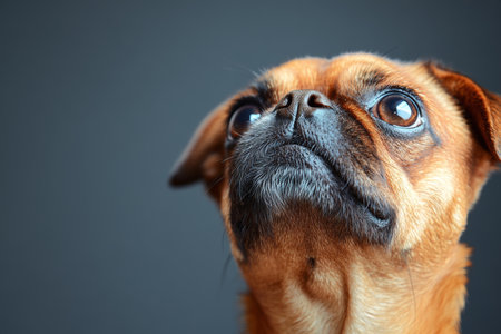 Charming Pug Portrait with Expressive Eyes and Adorable Features Against a Clean Gray Background