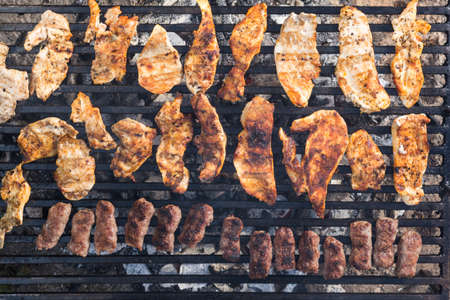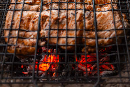 grilled roast meats beef lamb fillet ribs on bbq grid over charcoal