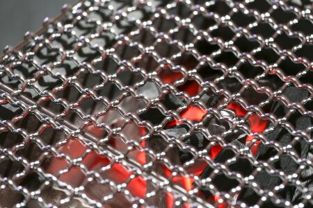 Barbecue grill pit with glowing and flaming hot charcoal briquettes