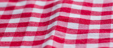 Red and white kitchen cotton fabric in a cage. fabric cotton texture checkered