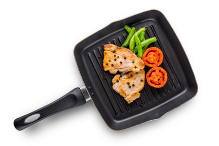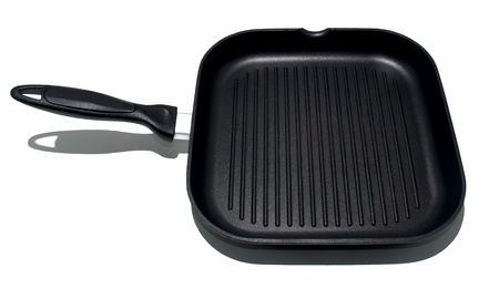 Empty black cast heavy iron grill pan modern kitchen equipment, isolated transparent background