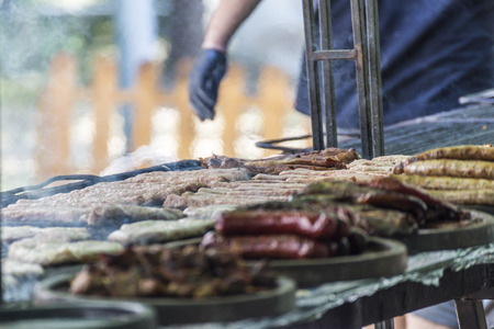 Preparing meat on grill, Serbian cuisine.