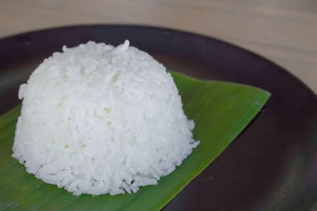 Fresh thai steamed white jasmine rice. Traditional thai side dish cuisine.