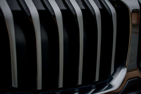 Modern luxury car close-up grille. Background, concept expensive, sports auto detailing