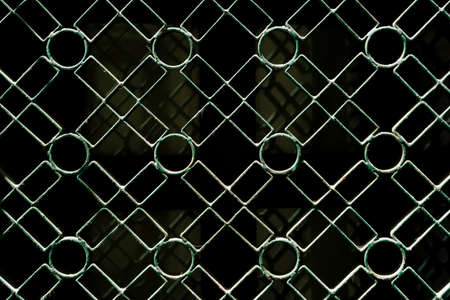 Fragment of a metal forged fence made of geometric shapes. Close-up