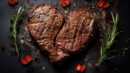 AI Generated. Succulent Grilled Steak with Rosemary and Sea Salt