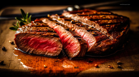 Sliced juicy grilled meat beef steak. Generative ai