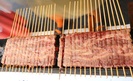 Grilled pork stick, Taiwanese street food at Sun Moon Lake, Taiwan.