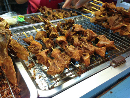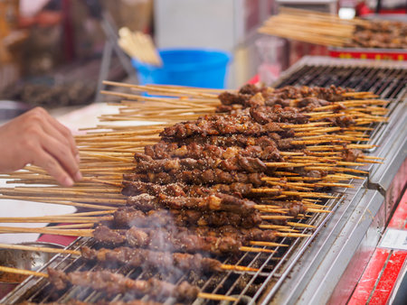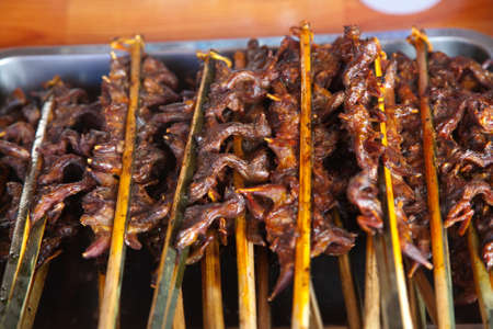 Grilled lamb meat on sticks at Wangfujing street, Beijing China