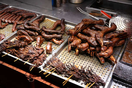 Taiwan night food market - Kenting Street Night Market. Cooked food buffet: various parts of goose and duck.