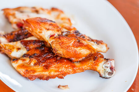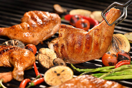 Close up picture of Delicious sizzling BBQ chicken on the grill