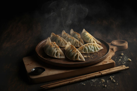 Delicious japanese gyoza dumplings with chicken and veggies, a delightful treat for your taste buds